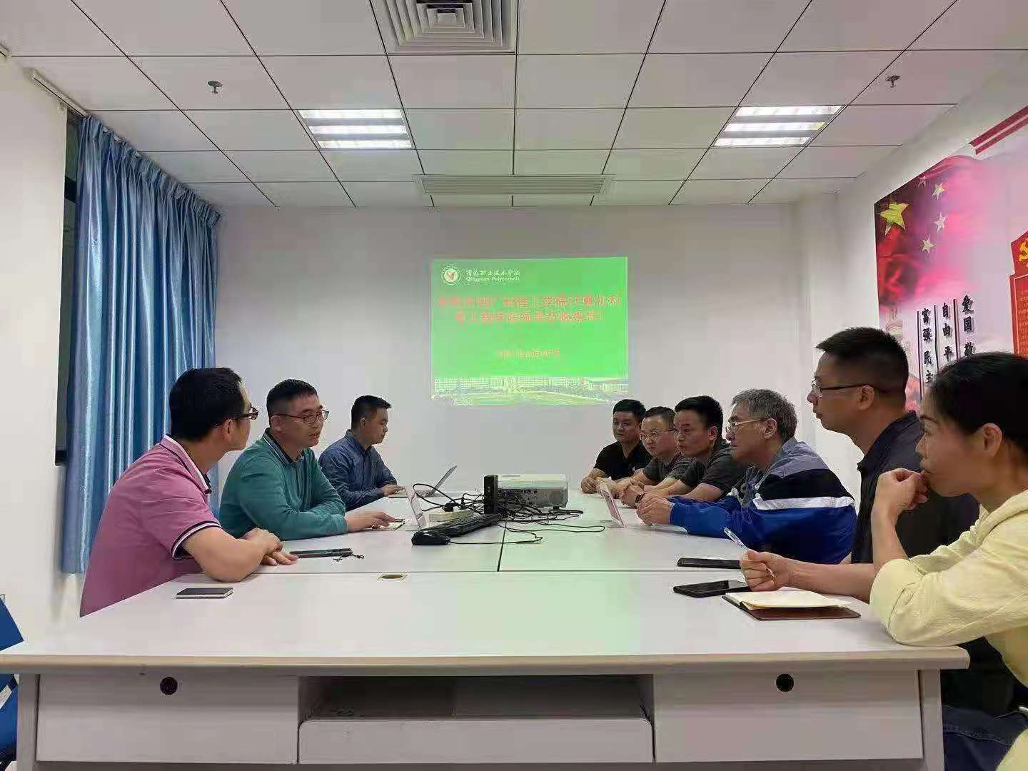 黄华院长介绍了其学院的办学情况,并详细介绍了信创学院的品牌专业计算机网络技术,以及他们的的特色工程——与清远市网信办合作建设的清远市网络安全教育馆,此工程得到了省、市领导的高度重视,并在每年的国家安全教育月承担清远市的各个单位的网络安全教育基地。由于我校的网络工程专业同为网络安全方向,经过双方详细研讨,决定开启专本协同育人项目。