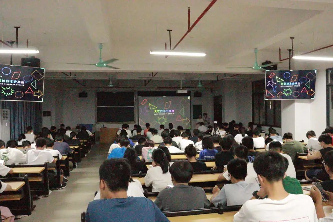 (何韦颖)9月25日晚上,天软科技工作室在13栋401举办天软技术分享会,分享会采取线下加直播的形式,邀请了师兄师姐向同学们介绍了前后端的区别,在分享会结束时同步公开了学习资料及学习路线。同学们从师兄师姐的经验和答疑解惑中找到了更适合自己的学习方法,为以后的学习打下夯实基础。
