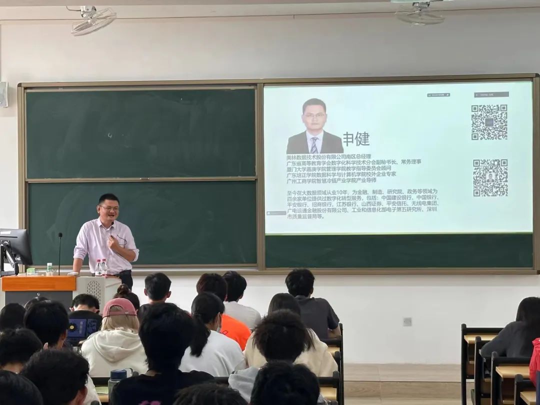 (通讯员:钟桂凤)自2020年以来,计算机科学与工程学院与美林数据技术股份有限公司紧密携手,共同促进产教融合,为开云kaiyun体育官方网站数智型人才高质量培养奠定基石。通过转化美林数据公司在产业数字化转型中积累的丰富大数据实践、产业大数据平台,双方合作共建了大数据实践教学基地与大数据应用研究院。12月14日下午,学院荣幸地邀请到美林数据公司南区总经理、大数据应用院副院长申健先生,为2023级惠州校区新生带来一场大数据专业知识的精彩宣讲。此次讲座吸引了大数据、计算机科学等专业的600余名师生积极参与。