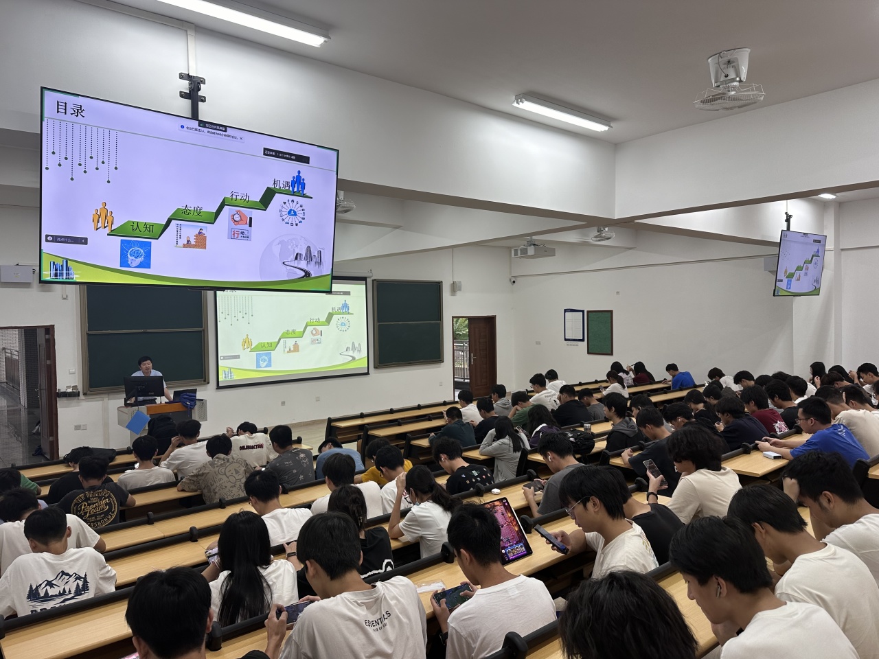在讲座中,郑教授以其丰富的行业经验和深厚的学术造诣,从专业能力培养和个人长远发展规划等方面,为同学们提供了一份事业成功的路线图。他强调了认知、态度、行动和机遇在职业发展中的重要性,并鼓励同学们积极面对挑战,把握机遇。郑教授引导同学们重新审视所学专业,并结合就业市场,让同学们对专业有了更深入的理解。接着,他详细阐述了大学生培养自身综合素质的六大途径,为同学们的大学学习和生活提供了明确的方向。最后,郑教授分享了多个行业内专业成功的案例,为同学们在专业领域的学习树立了榜样。