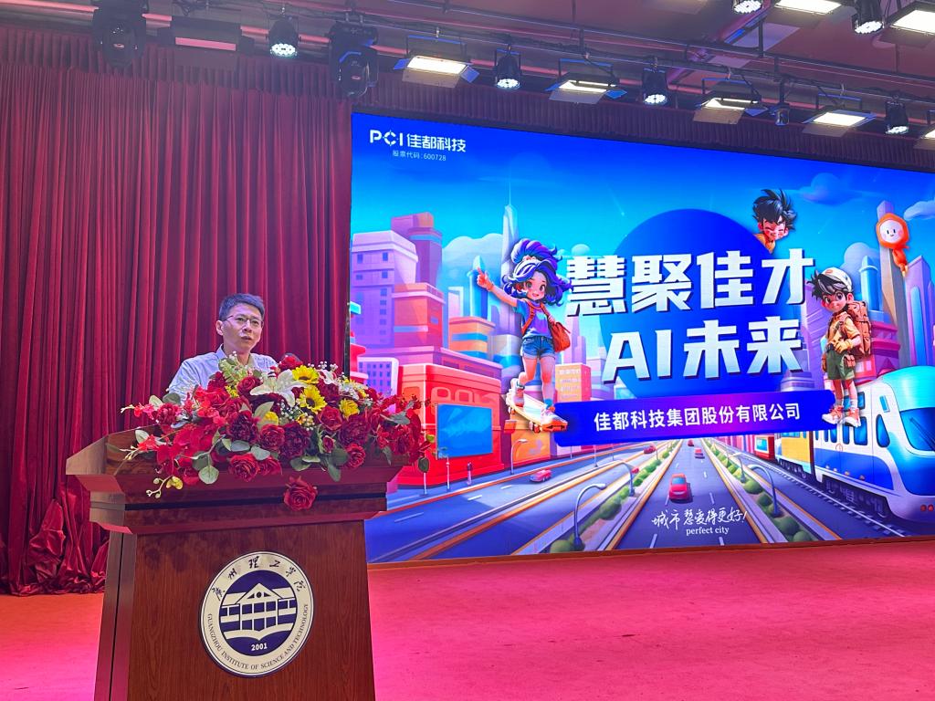 在讲座中,郑伟钿给学生作佳都公司的背景、发展历程以及与学校的合作情况介绍,并现场展示佳都科技在人工智能和轨道交通领域的成就与发展潜力,强调其在中国轨道交通领域的领先地位,特别是在广州地铁项目中的重要实践应用成果。据悉,公司自1992年成立以来,已发展成为智能交通和智慧城市等多个领域的龙头企业,现有近3000名员工,一半为研发人员。郑总监结合自身的学习和职业经历,鼓励学生参加校内外的实践活动。