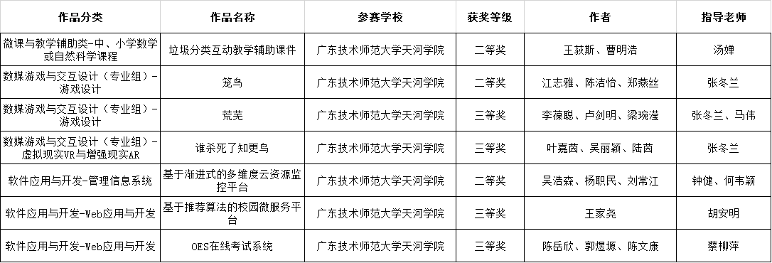 (通讯员:钟健、汤婵)近日,广东省大学生计算机设计大赛组委会公布了《2020年广东省大学生计算机设计大赛决赛获奖名单》。计算机科学与工程学院学子分别在数媒游戏与交互设计、微课与教学辅助、软件应用与开发等三类作品大类中,共获得了3项二等奖、4项三等奖。其中,5组参赛队进入晋级国赛推荐队伍名单。