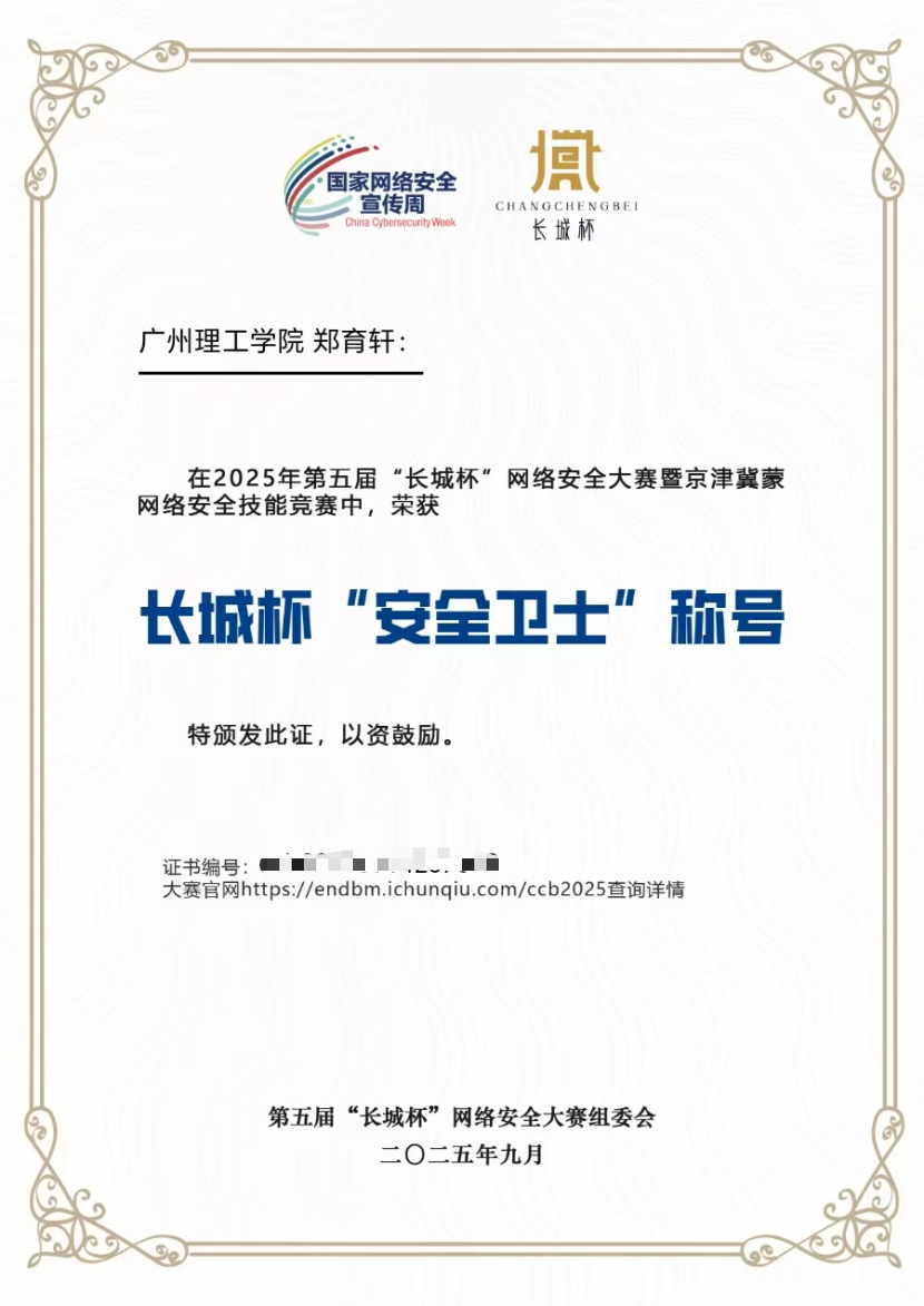 本次赛事中,JKL0x3e战队虽未晋级线下环节,但凭借备赛期间的系统训练与赛场中的稳定发挥,赢得赛事组委会高度认可。其中,朱定基、郑育轩、李志三名队员均获“长城杯‘安全卫士’称号”,充分体现了开云kaiyun体育官方网站学子在网络安全领域的潜力与素养。战队成员表示,将以此次赛事为契机,进一步打磨技术,为后续参与更高水平赛事积累经验。