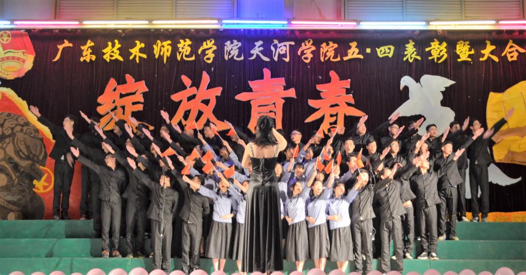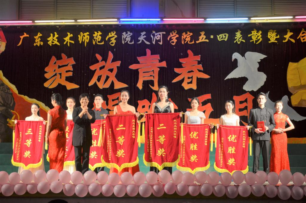4月27日,广东技术师范学院天河学院五四表彰大会暨大合唱比赛在体育馆成功举行。 本次比赛中,信息与传媒学院参赛选手们积极对待,认真排练,以一首限定歌曲《爱我中华》和一首自选歌曲《歌唱祖国》深深感染了在场评委和观众,让大家感受到我们学院选手的五四精神和激情澎湃的青春活力。 最终,信息与传媒学院参赛选手不负众望,斩获了第二名的好成绩! 在此感谢信息与传媒学院小伙伴们日日夜夜的付出!