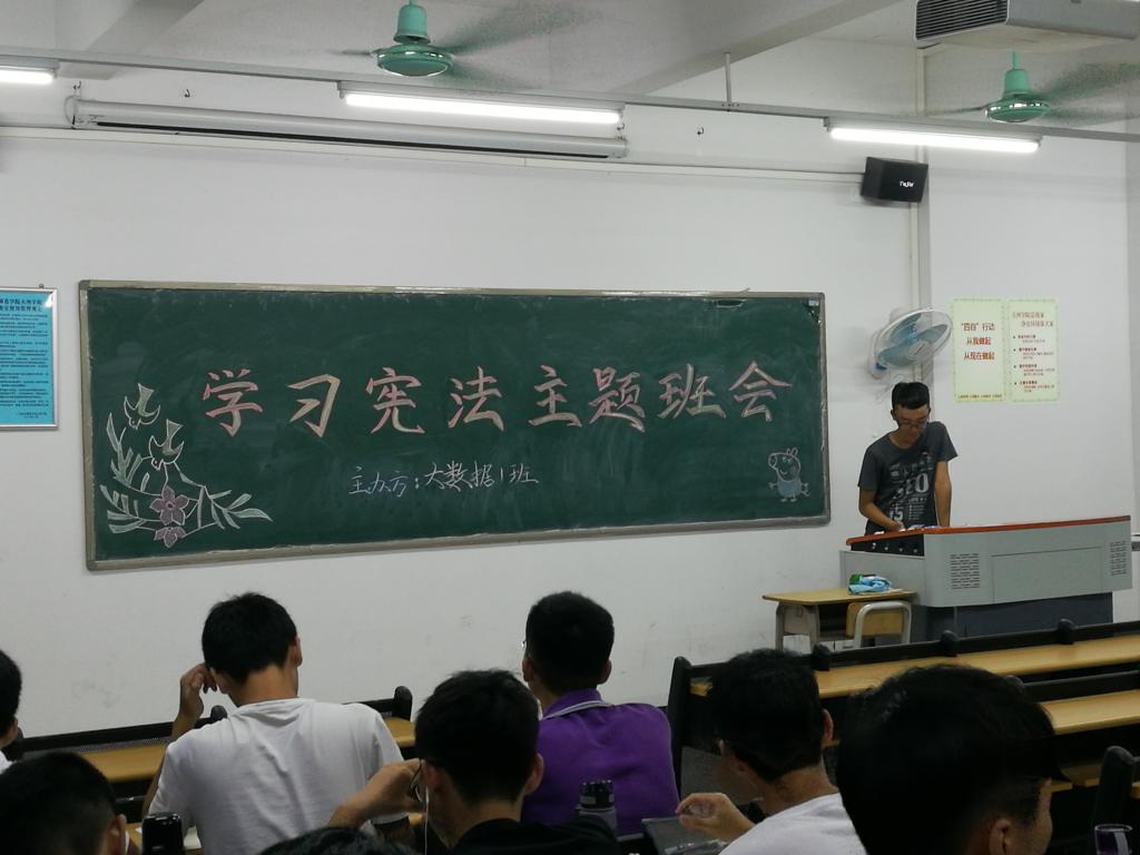 (通讯员王源)10月9日晚,计算机学院2018大数据班举行了学习宪法的主题班会,此次班会秉承着“尊崇宪法,学习宪法,遵守宪法,维护宪法,运用宪法”的目标,积极号召同学们组共同学习宪法。