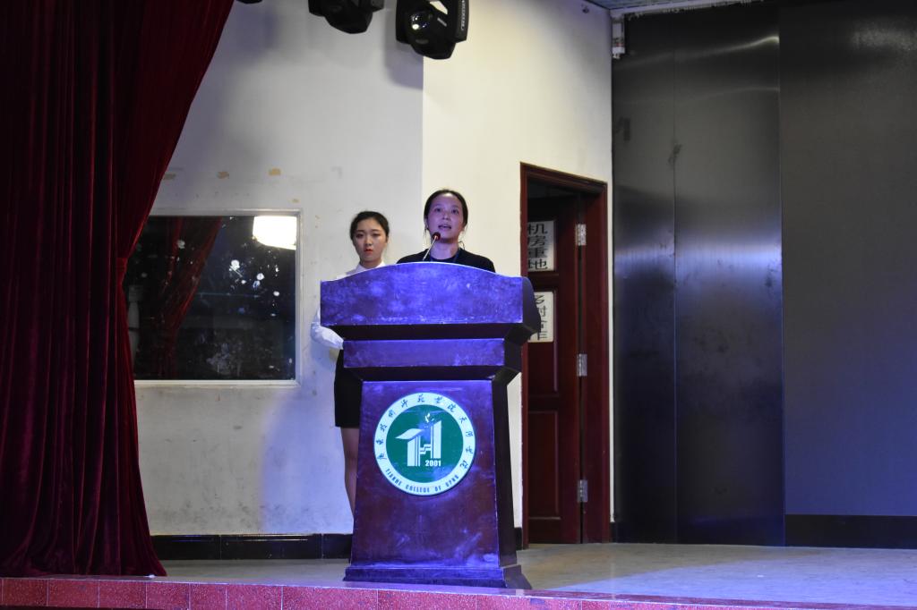 大会的第五项议程是颁奖环节,办公室主任陈星莹代表学院宣读了2017-2018年度学生干部表彰名单,校团委彭文刚书记和学生处杨惠副处长等对2017-2018年度工作积极分子、先进个人、先进部门进行颁奖。党总支刘亮书记、谌颃副院长等学院领导代表对2017-2018年度干部颁发聘书。