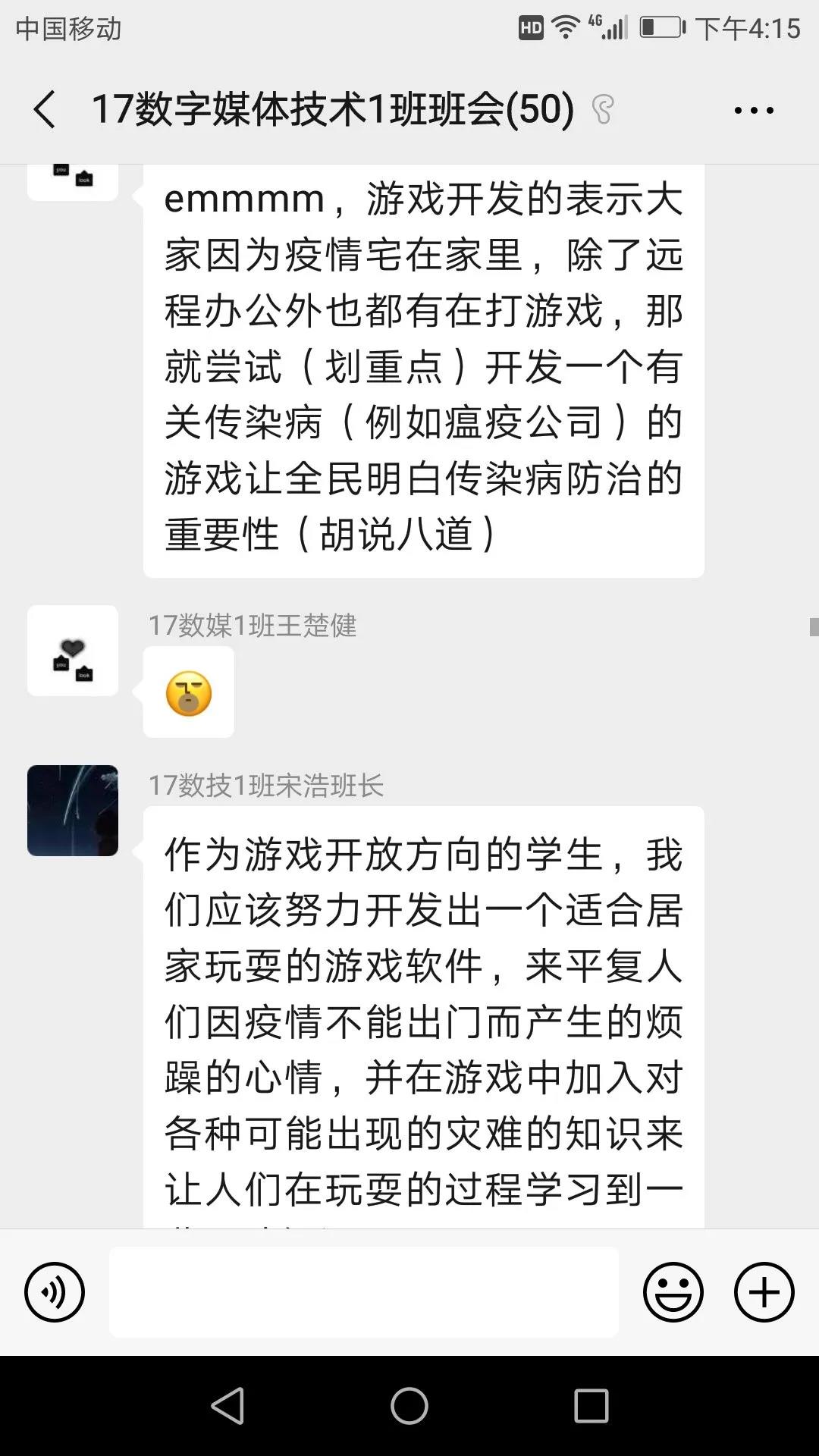 各班分别利用微信群、QQ直播和腾讯视频会议等方式,在线开展了这次特殊的主题班会。在会议上,辅导员老师给同学们普及新冠肺炎病毒的特点及传播途径,加强同学们对新冠肺炎的认识,让同学们做好科学防疫工作。同时通过视频和新闻等让同学们了解到,此次疫情中,我们国家人民在抗击疫情中所呈现的勇气、智慧和力量,增强同学们的抗疫信心和爱国主义精神。同时,辅导员老师在线呼吁同学们在疫情面前要培养良好的心态,同时积极配合学校的防疫工作,并且做好网上学习准备。同学们也纷纷针对疫情和居家学习等方面展开了讨论。