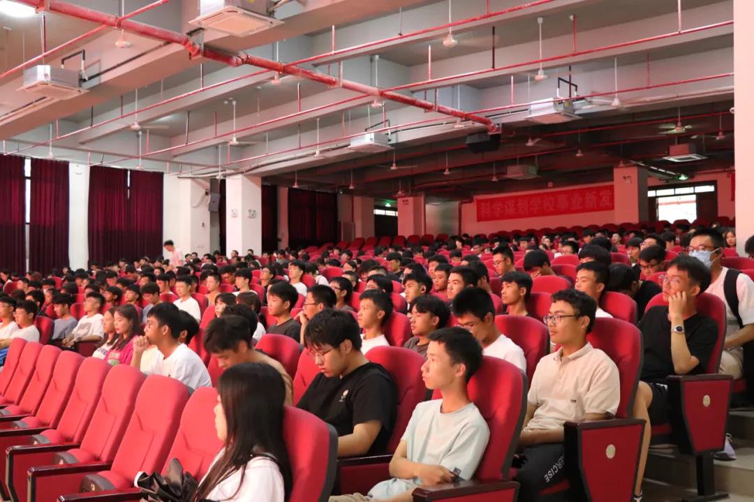 (通讯员:陈星莹)9月24日下午,计算机学院书记、院长秋季新学期“思政第一课”在新报告厅开讲。院长原峰山和党总支副书记蔡岳良分别担任主讲人,带领全体新同学进一步学习习近平总书记在庆祝中国共产党成立100周年大会上发表的重要讲话(以下简称“‘七一’重要讲话”)精神,号召全院师生要把学习“七一”重要讲话精神的成果转化为学习奋进的具体行动,立大志、干实事。学院2021级计科、软工、网工、数技、数艺和部分老师共一千多人到场,一起聆听了这堂生动的思政课。