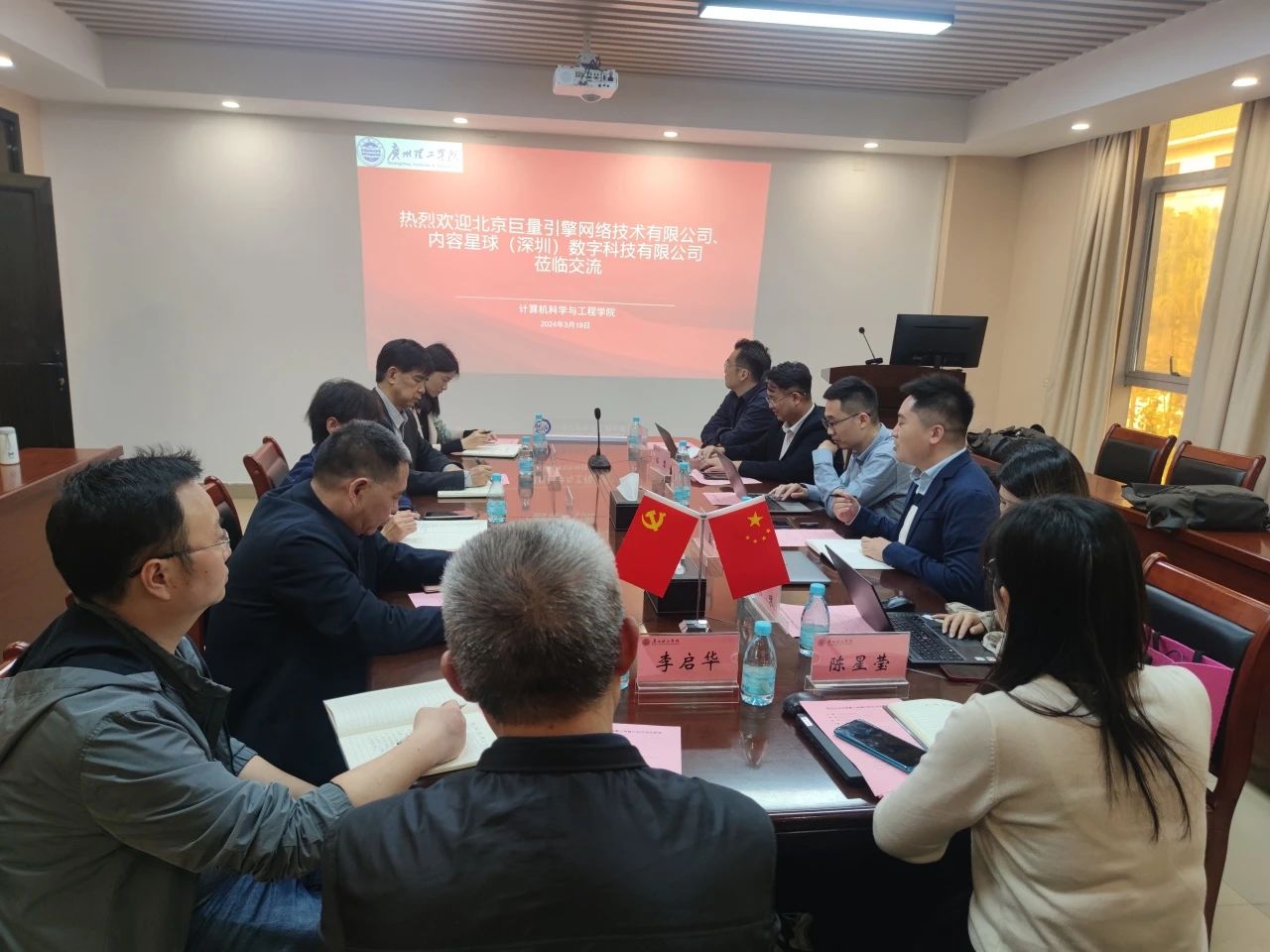 (通讯员:陈星莹)3月19日下午,北京巨量引擎网络技术有限公司认证运营总监曹磊、华南区域运营负责人李根、华中区域运营负责人朱咪,和其合作企业内容星球(深圳)数字科技有限公司总经理邢亮、CEO伍黎等一行到计算机科学与工程学院展开校企合作交流。广州理工学院副校长张世梅、教学管理部部长石玉强,计算机科学与工程学院的院领导班子和系主任等参加了交流。