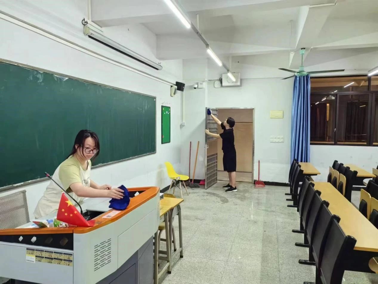 在打扫过程中,志愿者们分工明确,配合默契,用实际行动践行了“人人有责,人人参与”的理念。大家不仅注重清洁卫生,还注重课室环境的布置和美化。一些同学在课室里的绿板上贴上了励志标语和自己的座右铭。这些小细节不仅让课室变得更加温馨,也激发了同学们的学习热情。