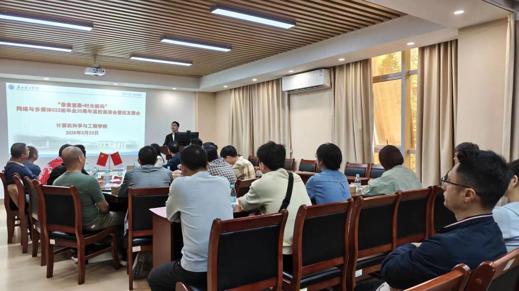 (通讯员:张静、李欣)3月23日,四号教学楼303会议室内暖意融融,网络与多媒体023班20余位校友跨越山海重聚母校,以一场充满科技情怀的"像素重聚·时光解码"主题活动,共同开启毕业二十周年的时光密钥。