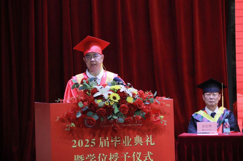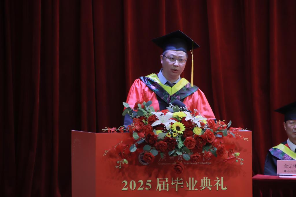 计算机科学与工程学院、人工智能与数字经济产业学院院长贺敏伟在致辞中,回顾了同学们在校期间的成长历程与蜕变时刻,高度肯定了大家在学科竞赛、科研实践等领域的亮眼表现。他勉励全体毕业生要传承校训精神,勇做粤港澳大湾区建设的奋进者、科技创新的探索者,在强国征程中书写无愧于时代的青春答卷。