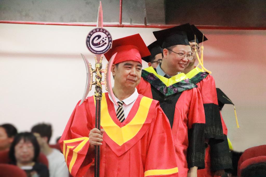 随着导师们身着庄重的学位服依次入场,毕业典礼在激昂的国歌声中正式拉开帷幕。