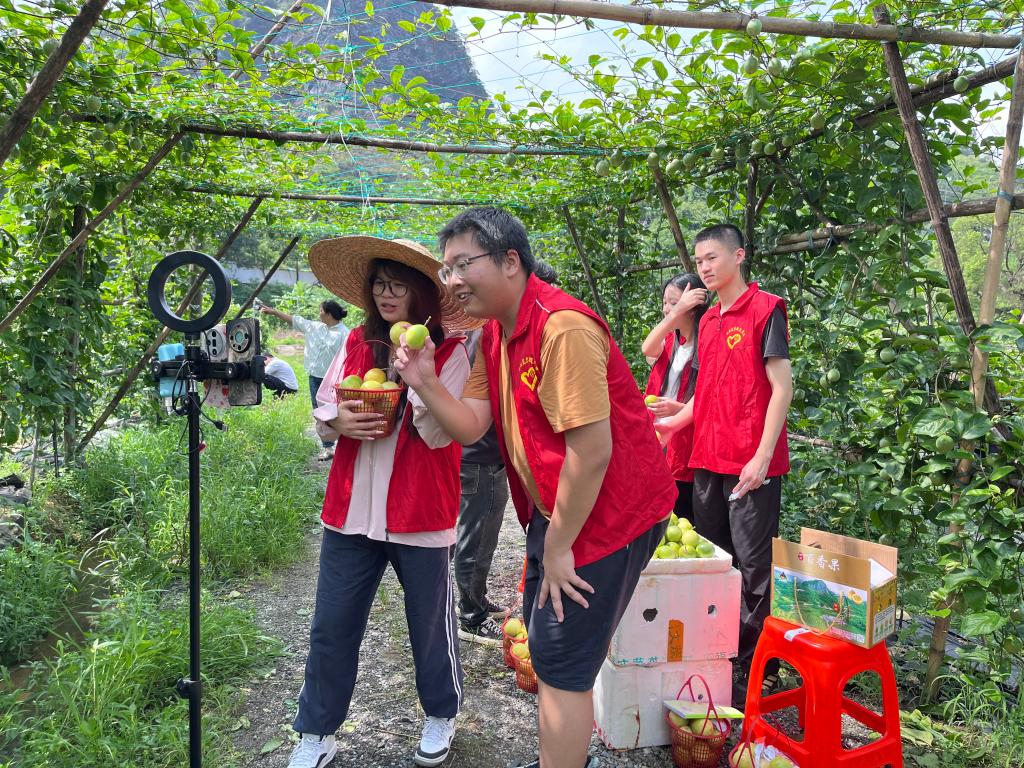 (通讯员:范晓殷)7月3日上午,广州理工学院数智助农突击队走进赤黎村地利坪百香果种植基地,以一场沉浸式助农直播为乡村振兴注入青春动能。翠绿藤蔓间,队员们用镜头架起云端桥梁,让“黄金一号”百香果的香甜从田间地头飞向全国千家万户。为确保直播效果,数智助农突击队做了大量的前期准备工作。一方面,深入农户和田间地头,通过走访调研、查阅资料等途径详细了解百香果的种植情况。另一方面,为保证直播效果,队员们在直播物资、平台搭建、直播预热等方面做了充足准备。
