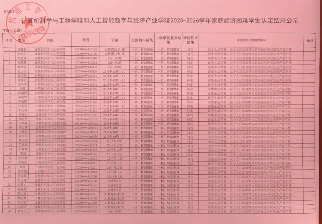根据《关于做好2025-2026学年家庭经济困难学生认定工作通知》(广州理工学助函〔2025〕10号)等文件精神,开云kaiyun体育官方网站积极开展家庭经济困难学生的认定工作。经过学生本人自愿提出申请、班级评议小组评议、二级学院核定工作小组初审等程序,现将2025-2026学年秋季学期家庭经济困难学生认定的院级初审结果予以公示。