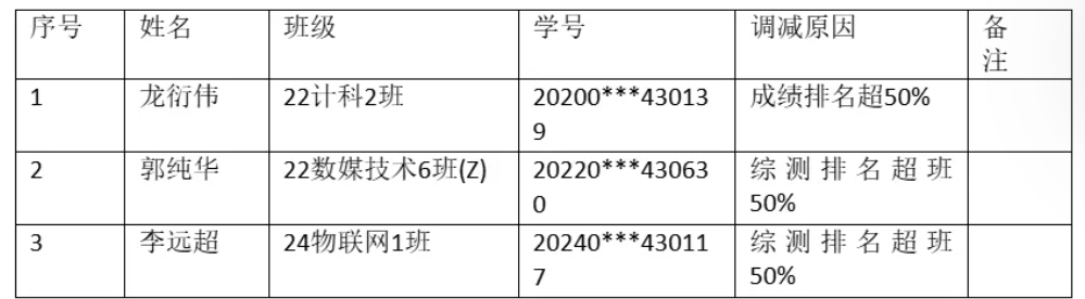 公示期为2025年10月20日至10月22日(共3个工作日)。如对上述调整情况有异议,请在公示期内向辅导员老师反馈,或以书面形式并署真实姓名投信到信息楼309办公室旁信箱或电子信箱jsjxy@gzist.edu.cn反馈,也可致电计算机学院办公室:020-87477070。