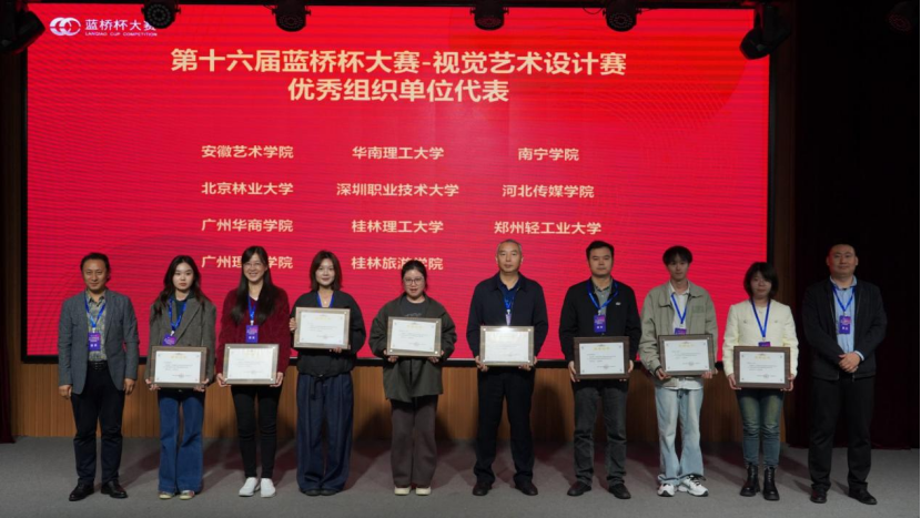 主论坛上,思想碰撞尤为热烈。青岛农业大学校领导与蓝桥杯大赛组委会执行秘书长李艳萍的致辞,既肯定了过往赛事成果,也勾勒出设计教育与行业接轨的发展蓝图。鲁迅美术学院王亦飞教授以《艺术创新力——与无形的力量互动》为题,用鲜活案例阐释创新思维的培养路径;北京印刷学院严晨教授提出的“大学生数字艺术创作‘五要素’指导法”,为破解教学痛点提供了可落地的解决方案。值得一提的是,在同期举行的第十六届大赛表彰环节,广州理工学院凭借出色的赛事组织与亮眼的学生成绩,一举斩获“优秀组织单位”“优胜学校”两项荣誉,陈丽思老师代表学校登台领奖,这份认可也成为该校深耕实践教学的有力见证。