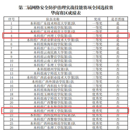 华南赛区成绩表