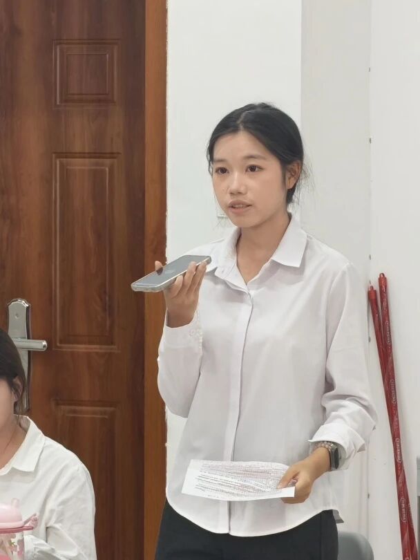 比赛尾声,评委胡心月同学进行专业点评。她首先肯定了两支队伍的出色表现,称赞双方“立论清晰、逻辑链条完整,在自由辩论中展现出极强的应变智慧”,随后逐一分析了两队在论证过程中的优点与不足,点评精准到位。