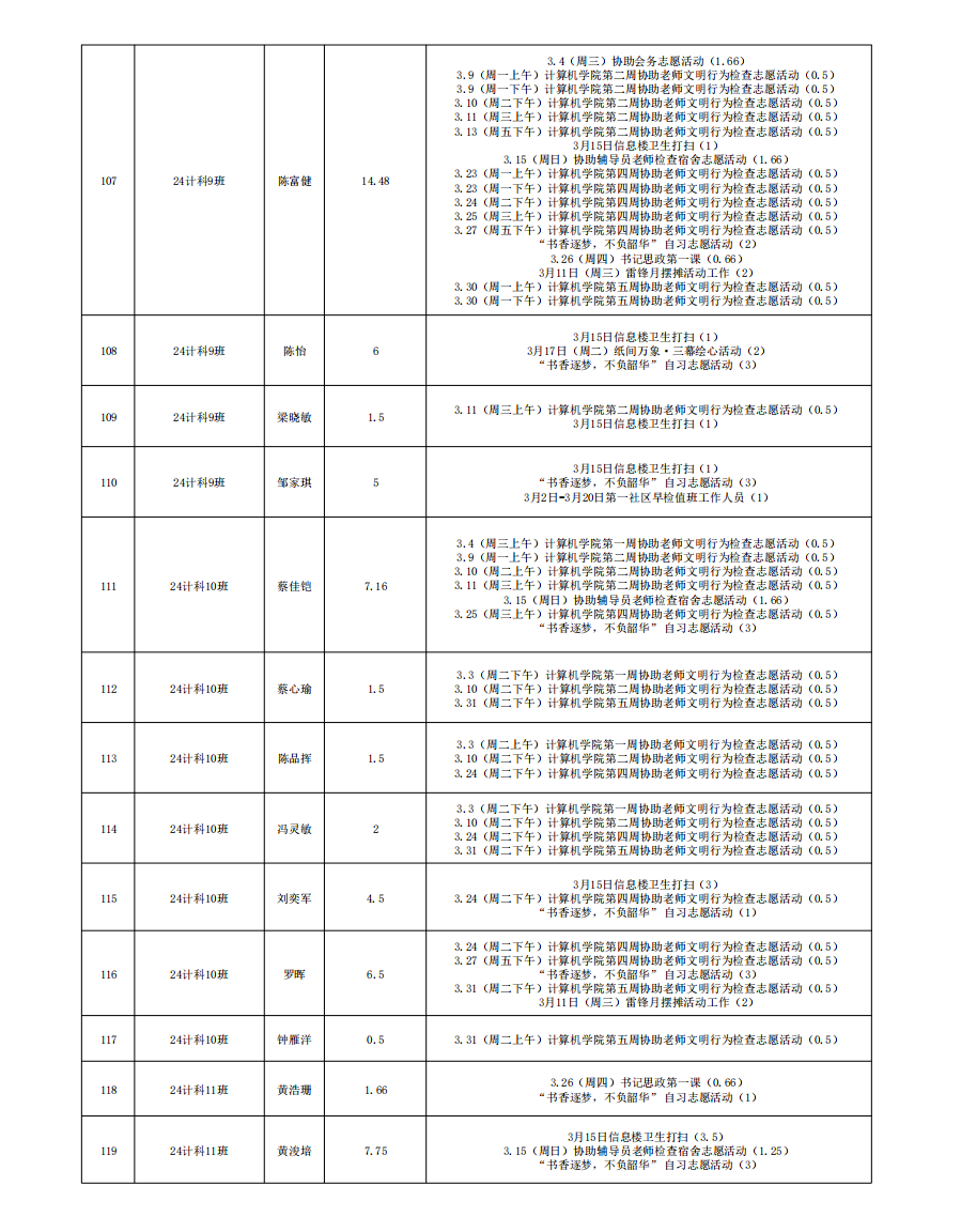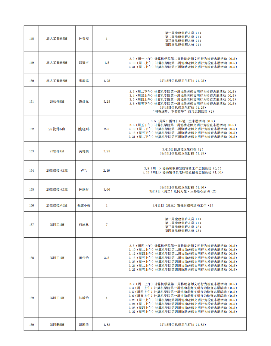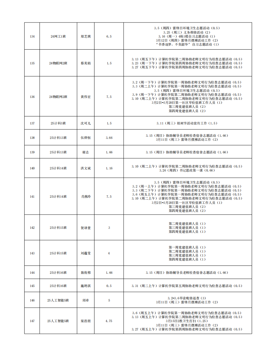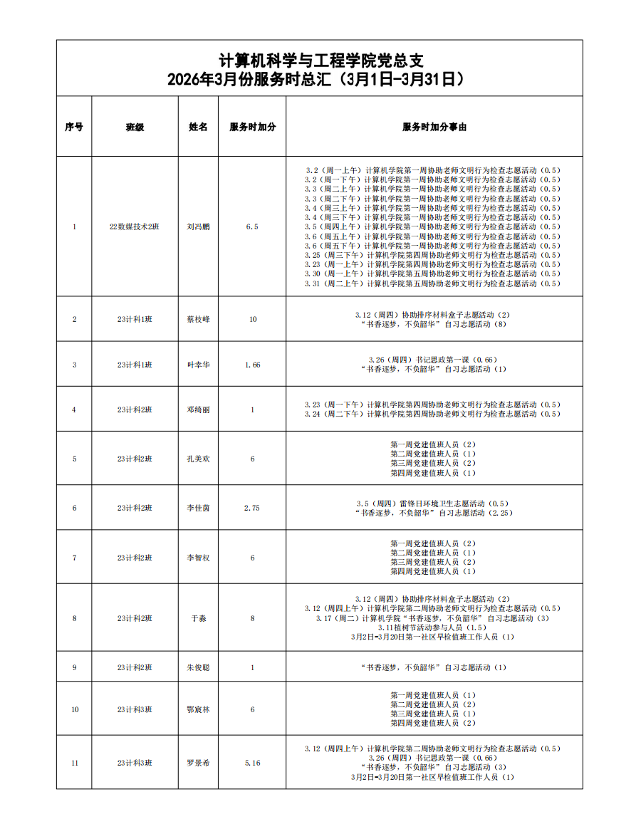 2026年3月份服务时总汇公示名单