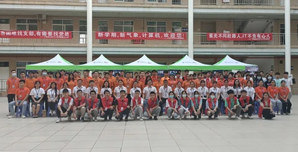 当第一缕晨曦洒进校园,原本安静的校园开始热闹起来,伴着朝阳,踏着晨辉,计算机科学与工程学院的迎新工作也开始有条不紊地进行着。