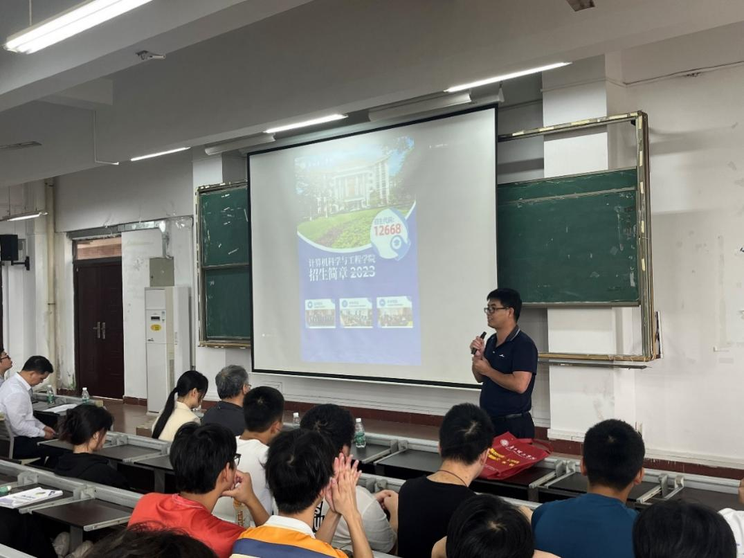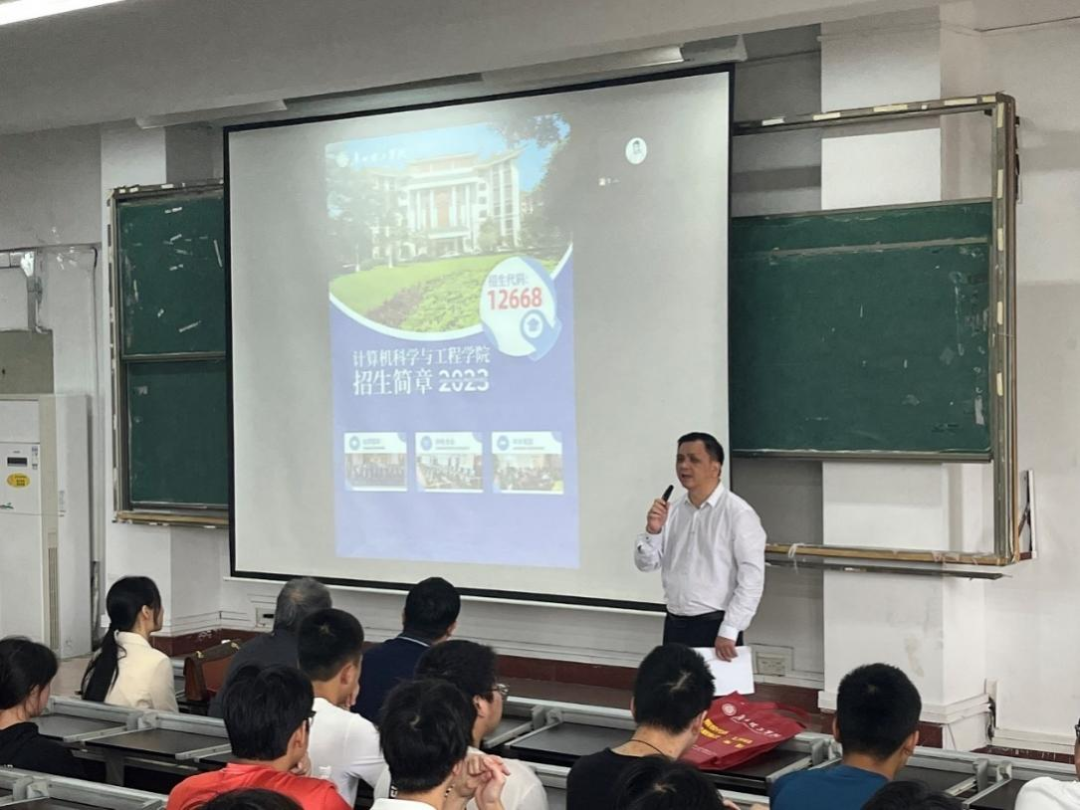 (通讯员:陈健)4月12日,计算机科学与工程学院院长原峰山带队赴广东理工职业学院人工智能学院开展2023年专升本招生宣传,学院党总支书记蔡岳良,数据科学与大数据技术专业主任钟桂凤,学工办主任陈健同行参加。广东理工职业学院人工智能学院院长邱炳城,学院党总支书记梁国军,副院长李美满,办公室主任陈吉生、毕业班辅导员老师及学生代表参加了宣讲会。