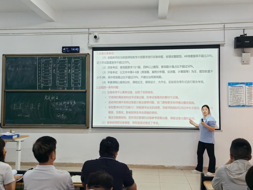 2025年7月7日,为切实做好本科教学合格评估准备工作,计算机科学与工程学院、人工智能与数字经济产业学院于6教101课室召开2025年春季学期期末教学评估工作专题会议。会议围绕试卷命题、教学资料归档、教学大纲整改等10项核心工作进行全面部署,学院领导班子、各系部主任、课程组组长及全体教师参加了此次会议。