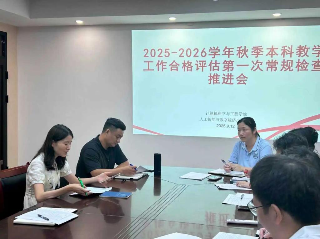 9月12日,计算机科学与工程学院和人工智能与数字经济产业学院在4-304举行了2025-2026学年本科教学工作合格评估第一次常规检查推进会。本次会议聚焦本科教学工作合格评估关键任务,对各项准备工作进行了深入研讨和部署。