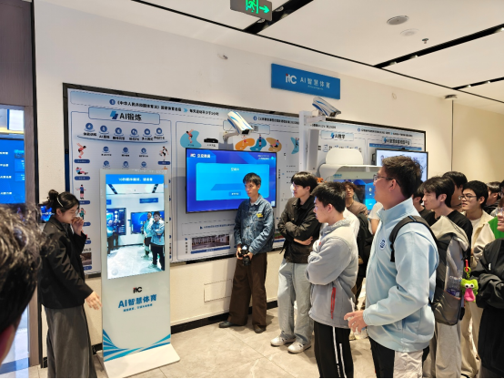智慧体育展示区,讲解人员重点介绍AI智慧体育系统的应用成效:系统通过实时捕捉视频画面中的人体姿态信息,借助人工智能算法精准识别、分析运动行为,自动统计运动次数、时长、运动量等核心数据,为体育教学优化、科学锻炼指导提供精准数据支撑。